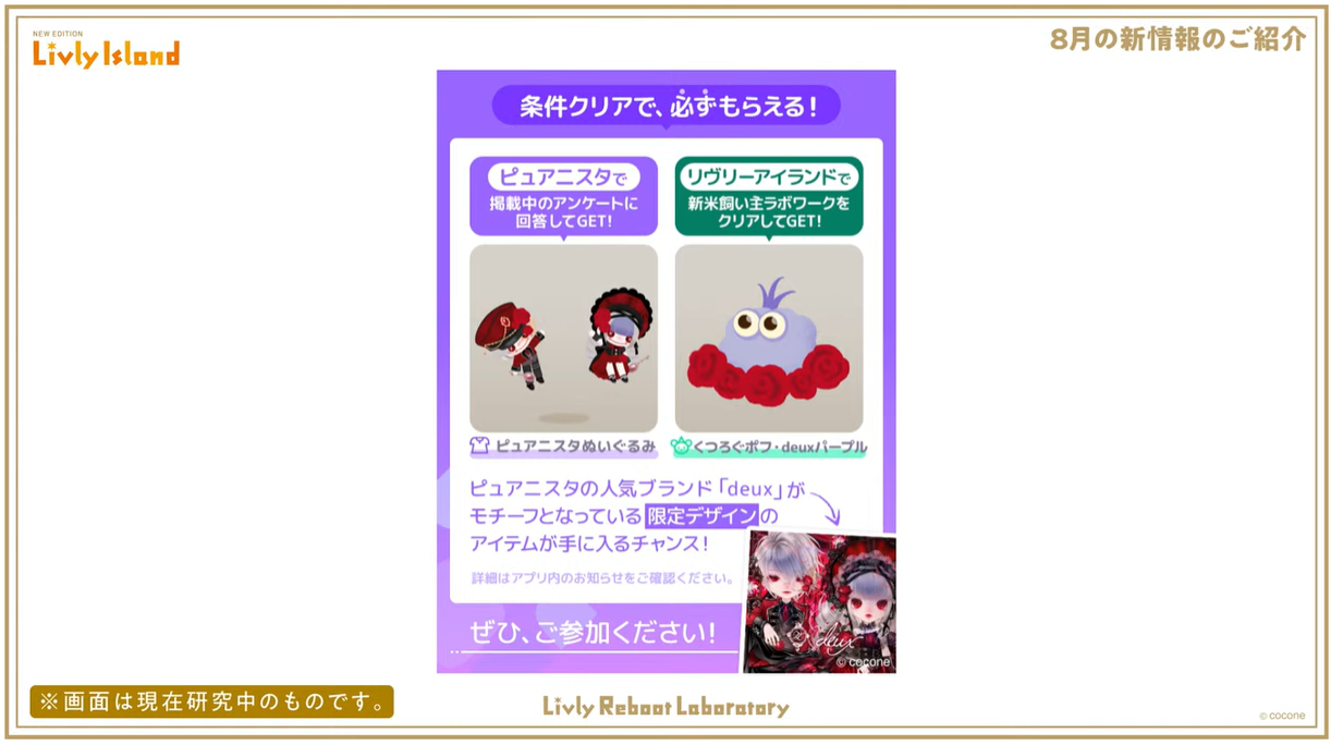 また、ピュアニスタでもリヴリーアイランドとコラボしたガチャが登場予定です。
